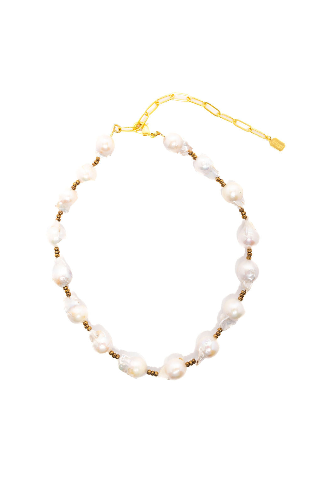 The Perliza Necklace celebrates the natural beauty of freshwater baroque pearls, each one uniquely shaped and lustrous. Delicate gold bead spacers punctuate the strand, adding warmth and sophistication to this timeless piece. Perfect for layering or wearing solo, this necklace brings an effortless elegance to any occasion—from everyday moments to special celebrations. A versatile treasure that complements both classic and contemporary styles.24K Gold Plate. Lobster Claw Closure. Proudly made in the U.S.A
