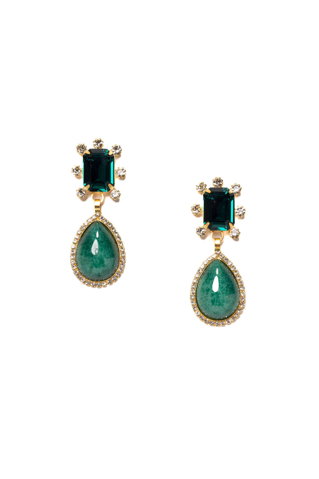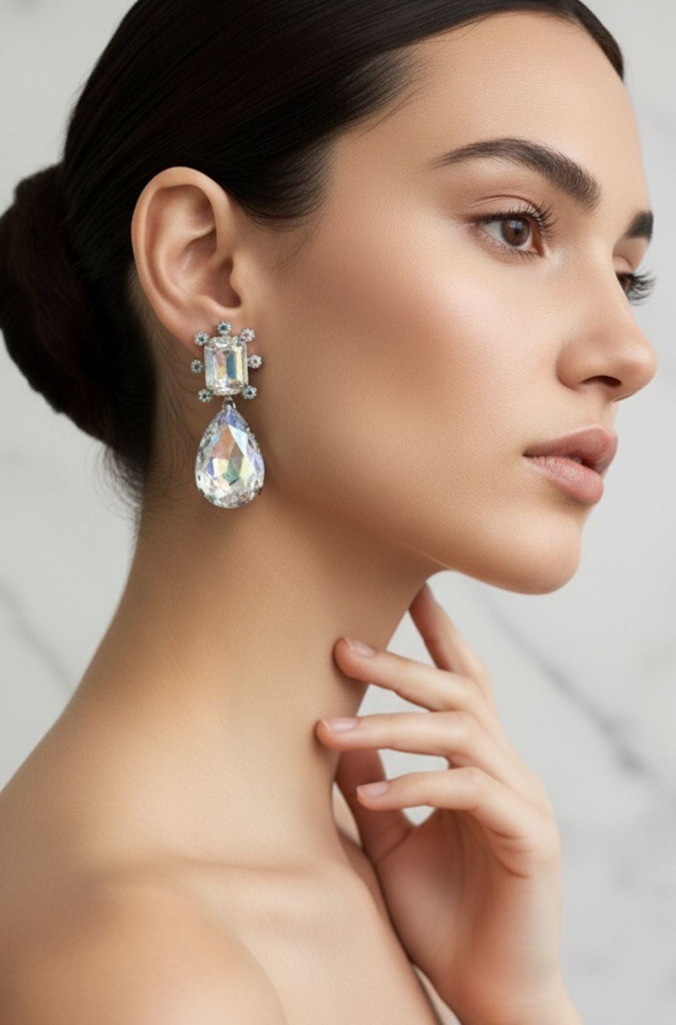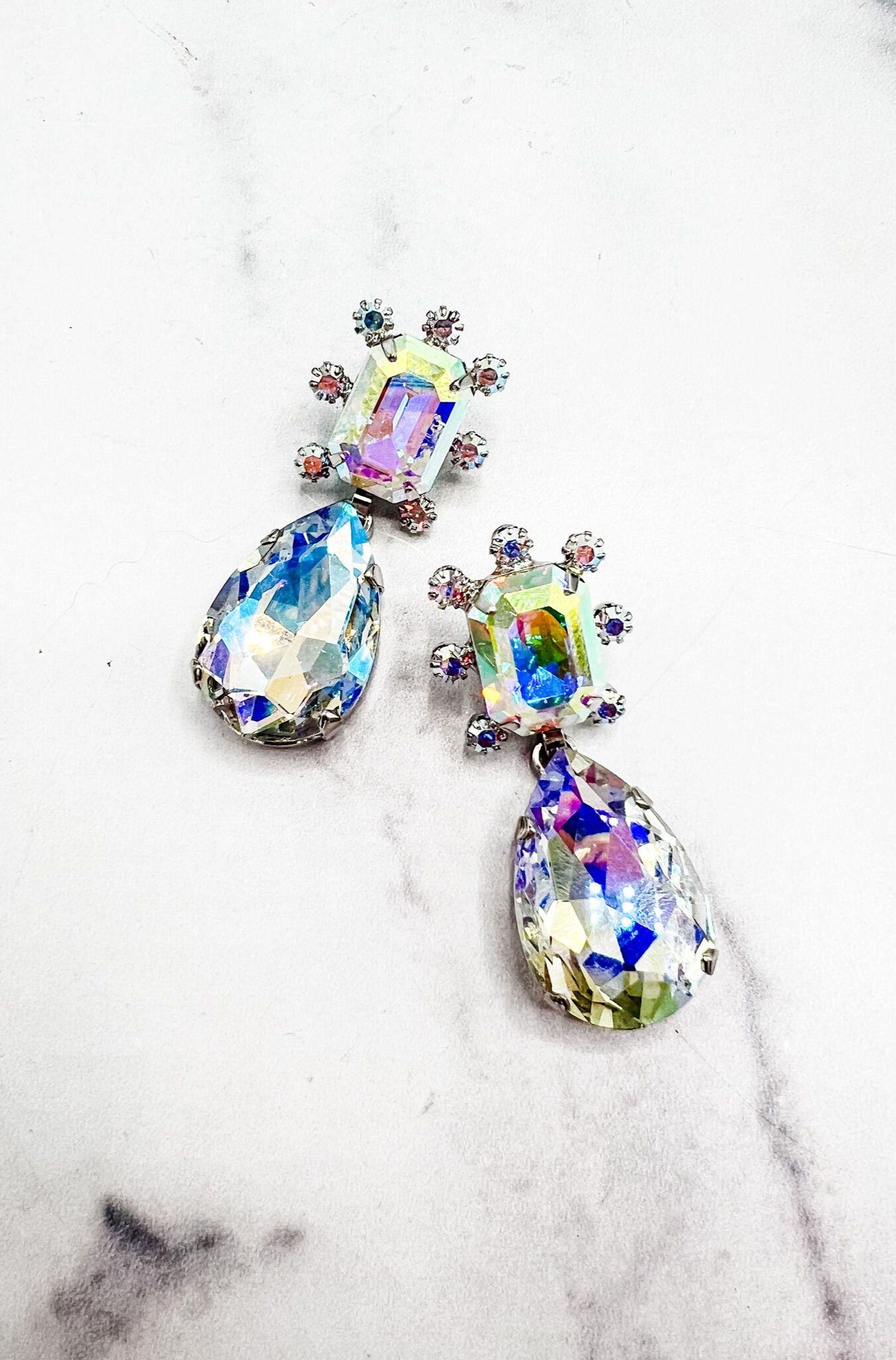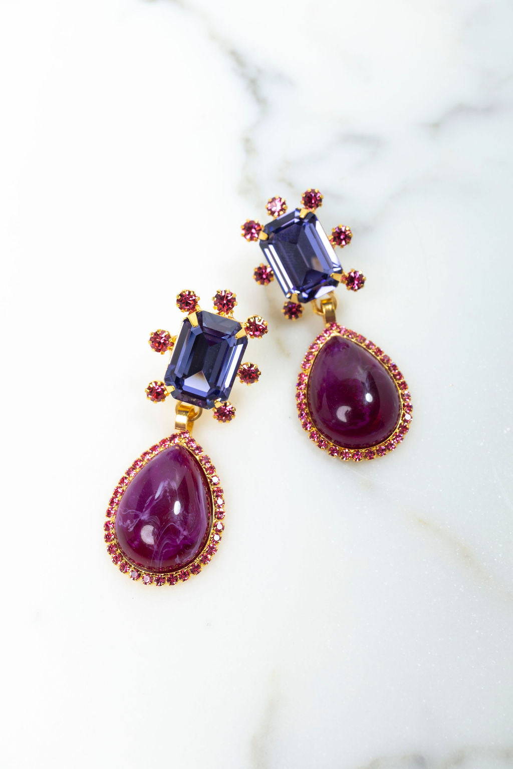 Introducing Kelly’s sister: the Agnes Earrings. These elegant double drop earrings showcase a rectangular topper encircled by sparkling crystals, paired with a pear-shaped crystal that gracefully hangs below. Offered in three sophisticated options—Swarovski Aurora Borealis, green crystal with faux jade, or purple crystal with faux jade—each pair brings a refined sparkle perfect for elevating any look.24k Gold Plate. Rhodium Plate. Post Closure. Handcrafted proudly in the U.S.A.