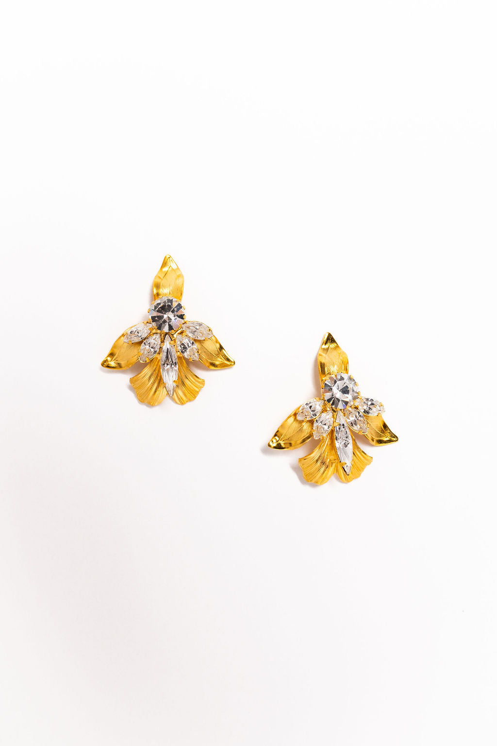 These show-stopping studs feature a golden fleur de lis design adorned with clusters of marquis-shaped Swarovski crystals that catch the light from every angle. Perfect for adding instant glamour to any look, these oversized beauties make a bold statement without sacrificing elegance. Proudly crafted in the USA, the Eliza Earrings deliver luxury sparkle with a touch of timeless sophistication—because sometimes bigger really is better.