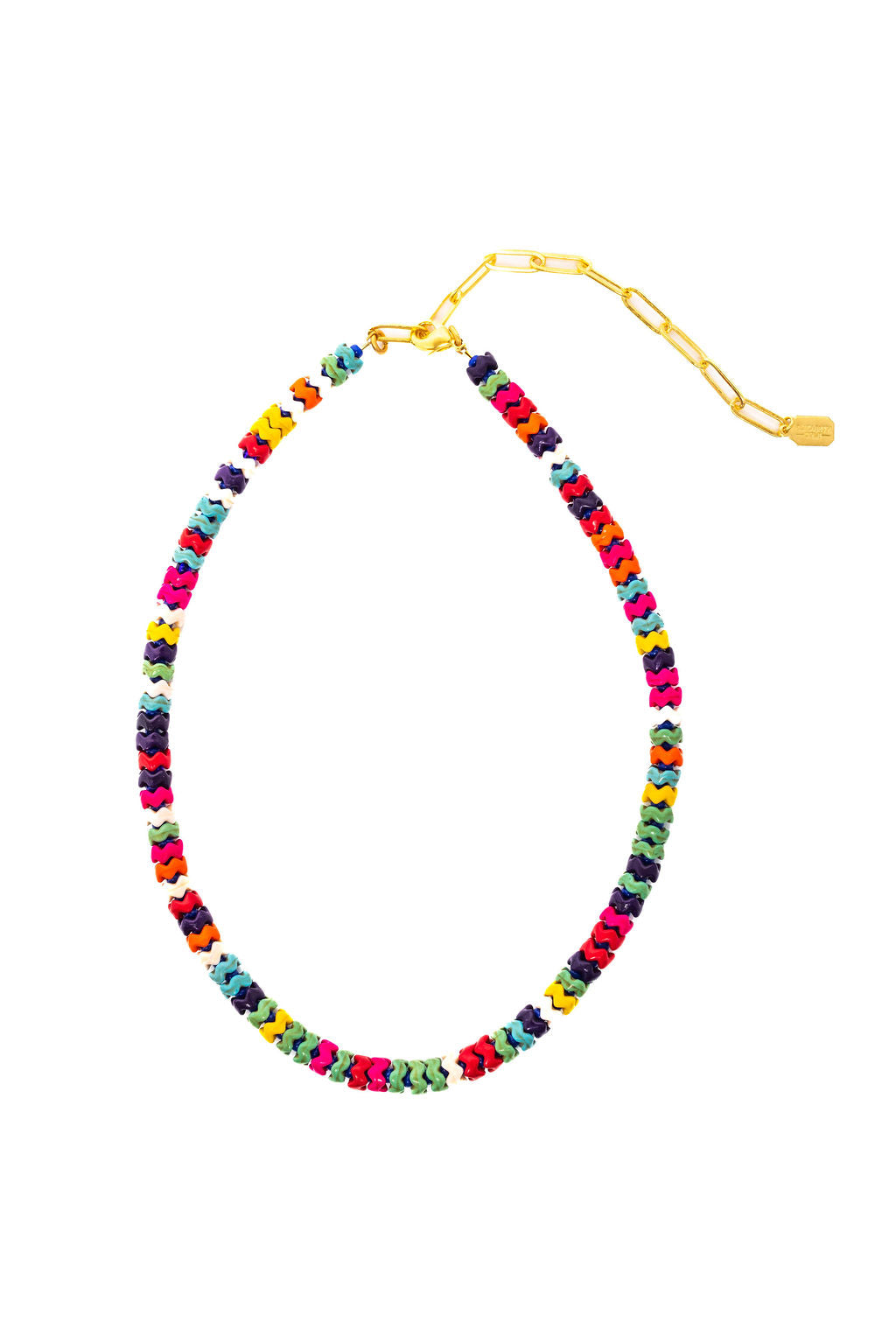 Discover the Aroya Necklace—a delightfully dainty take on our beloved Aroha design. Strung with petite interlocking howlite beads in a vibrant rainbow of hues, this playful piece brings cheerful color to any outfit without the weight. Each necklace is proudly crafted right here in the USA, making it a feel-good accessory that's as kind to the planet as it is to your neck. Perfect for layering or wearing solo, the Aroya adds a pop of joy to your everyday style.